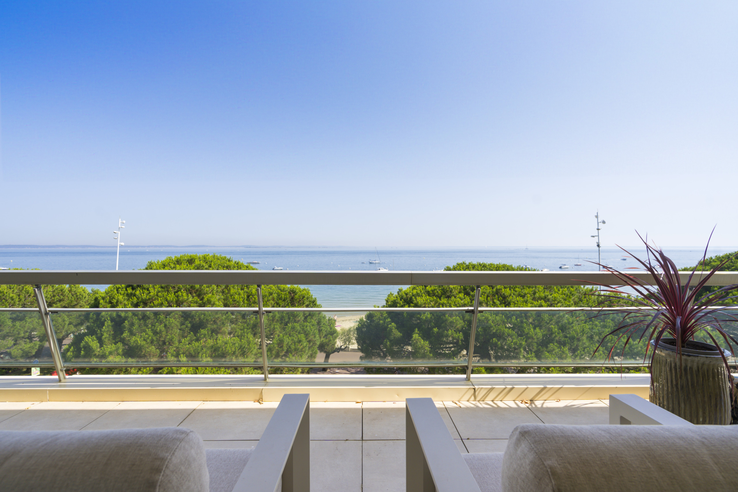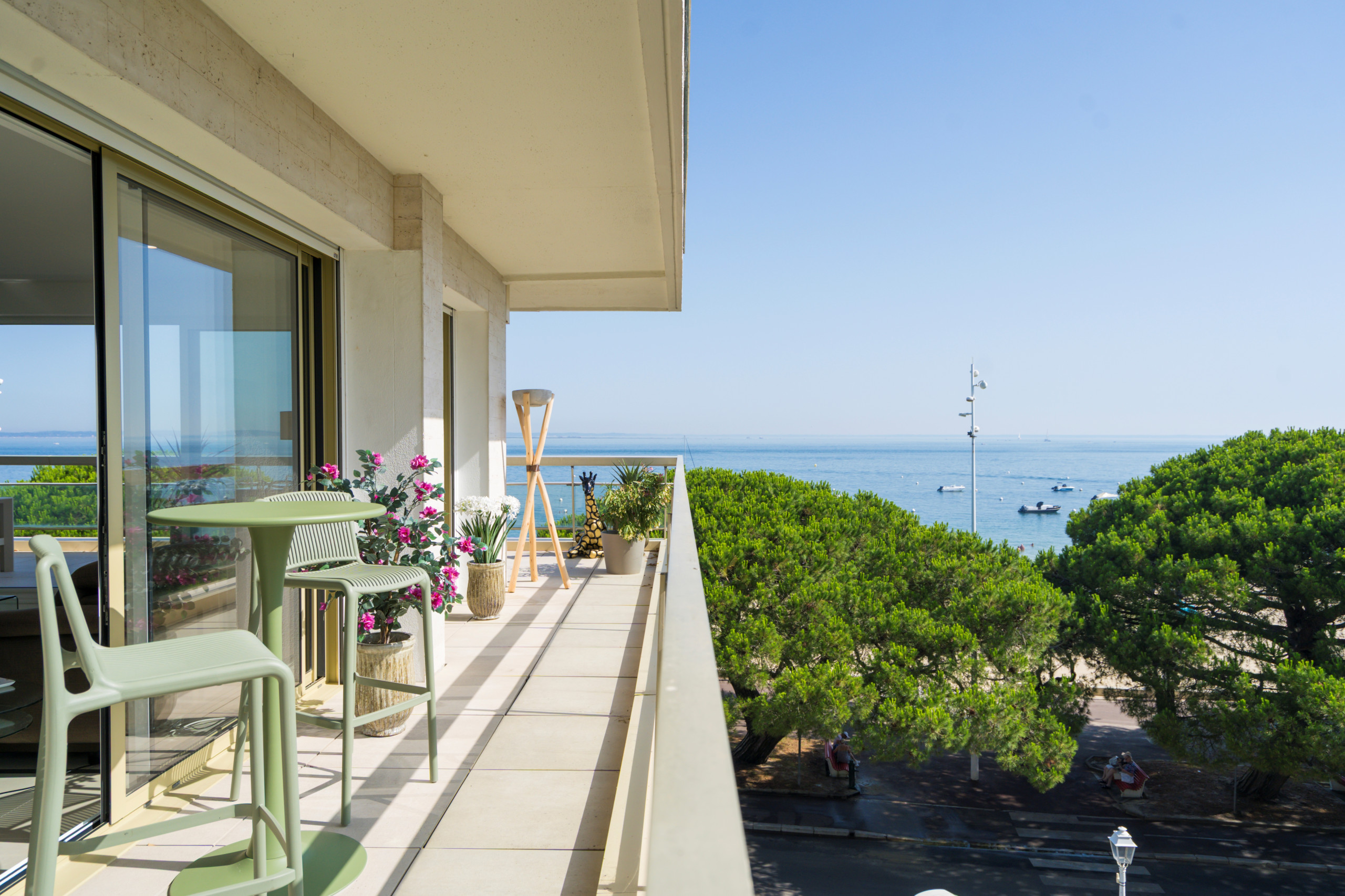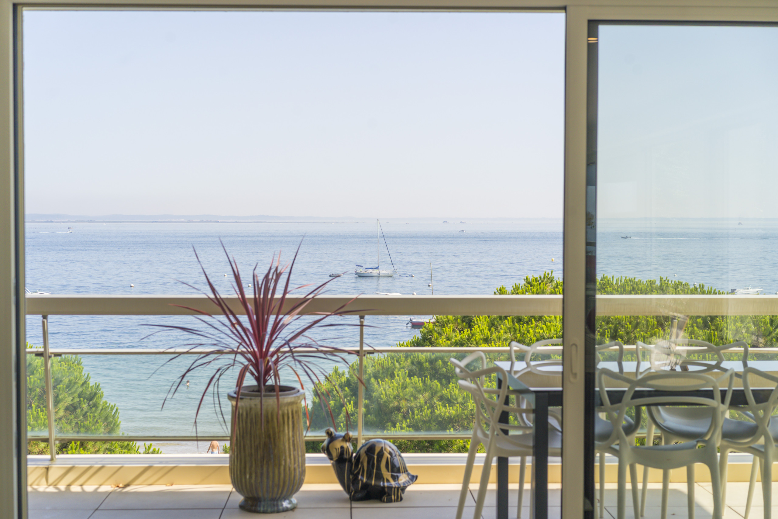 Un appartement d'exception niché sur le front de mer d'Arcachon. Vue Mer Panoramique, accès direct à la Plage, Climatisation, Parking privé, Hyper-centre avec tous les commerces et restaurants a proximité directe.