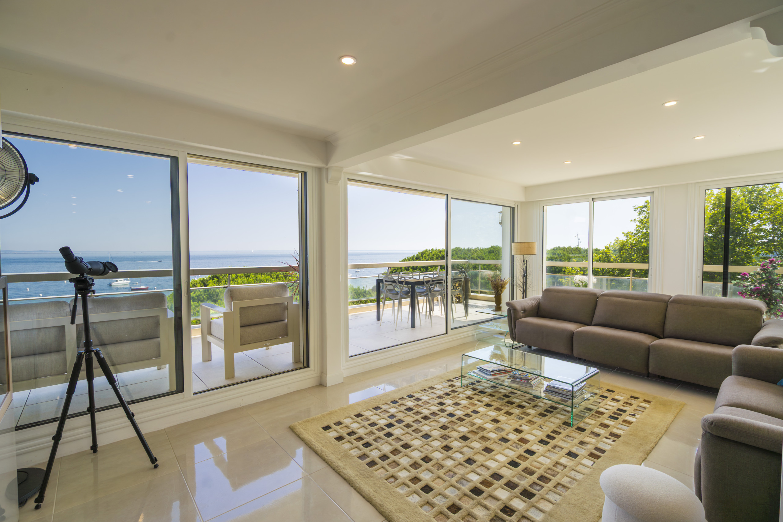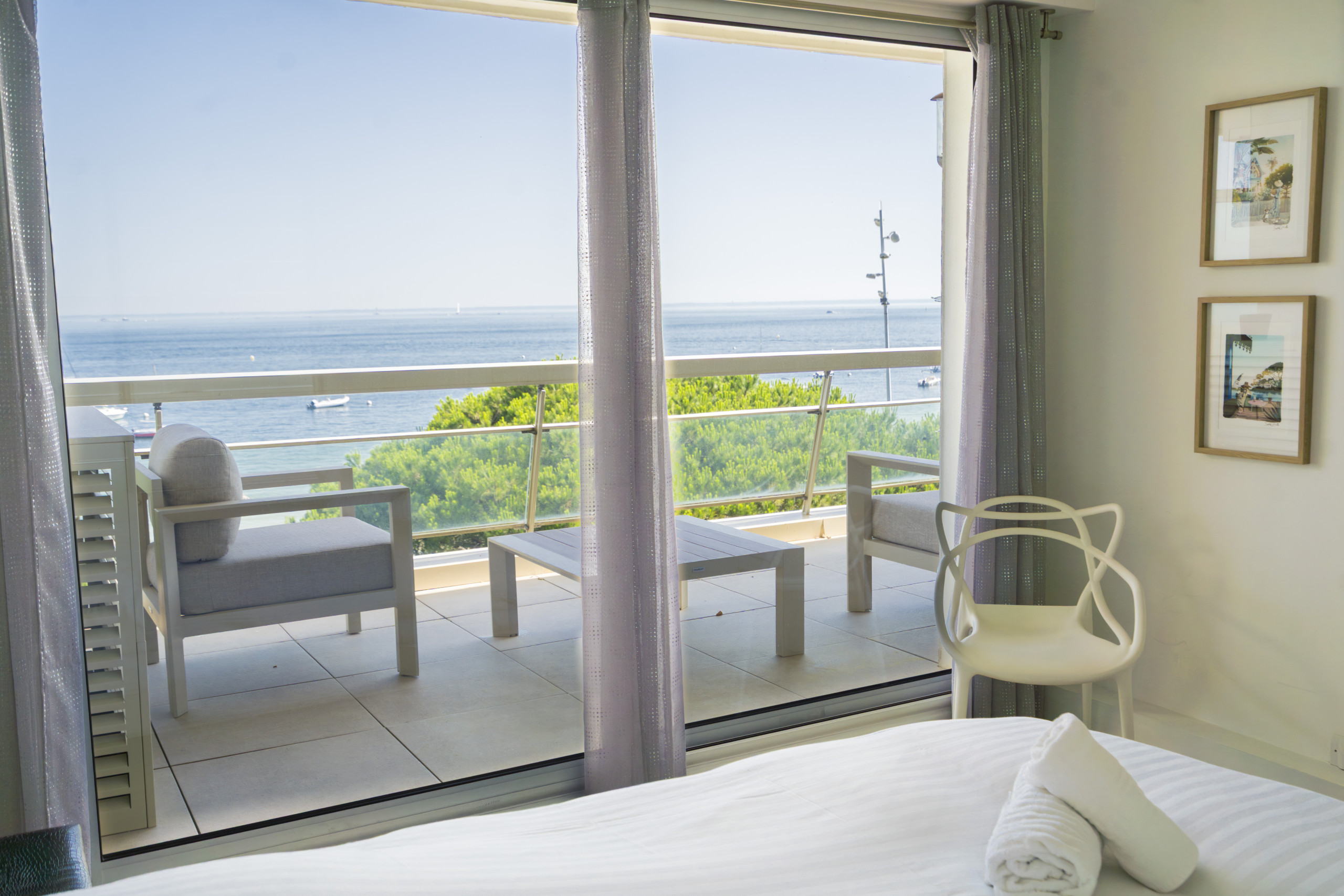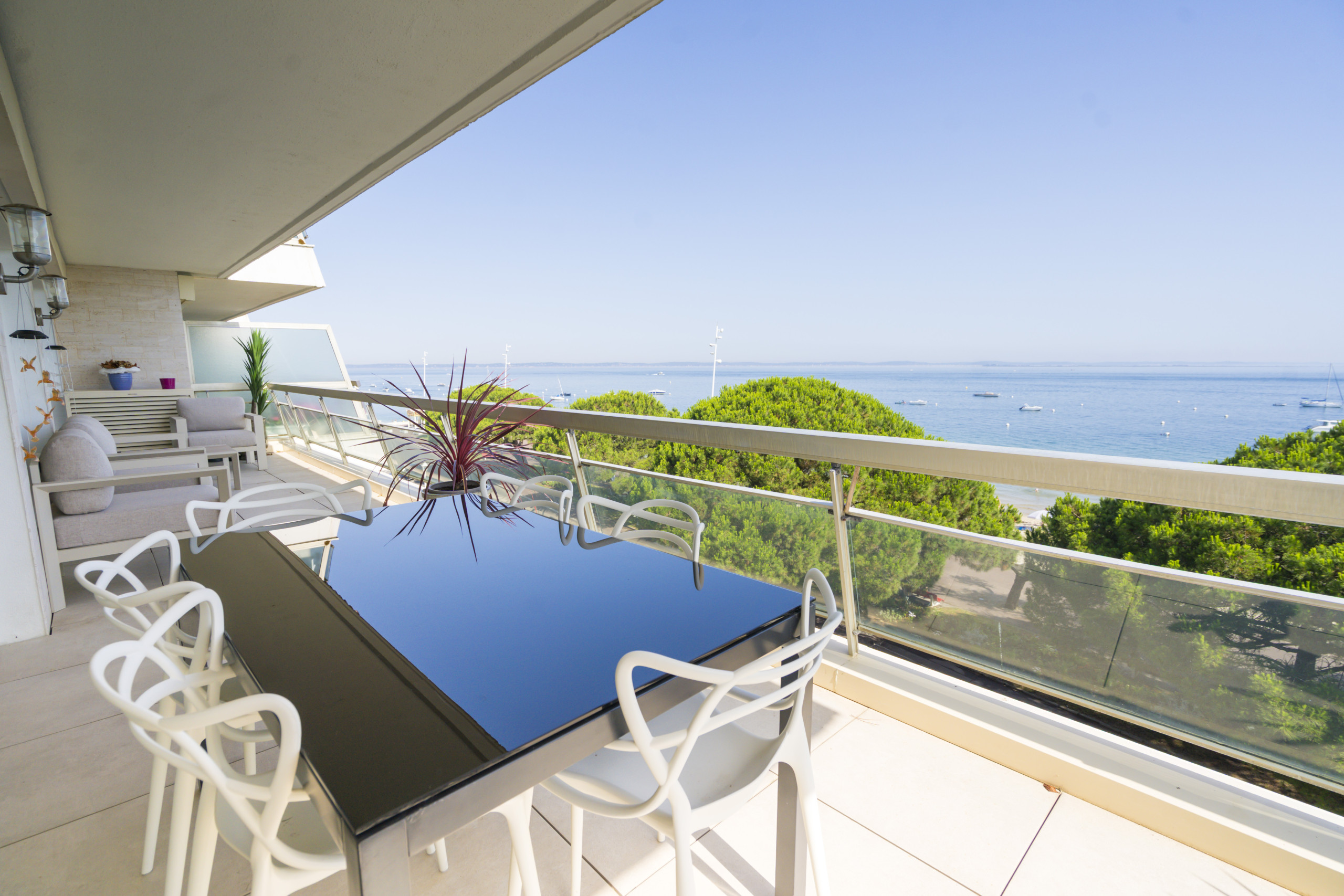 Un appartement d'exception niché sur le front de mer d'Arcachon. Vue Mer Panoramique, accès direct à la Plage, Climatisation, Parking privé, Hyper-centre avec tous les commerces et restaurants a proximité directe.