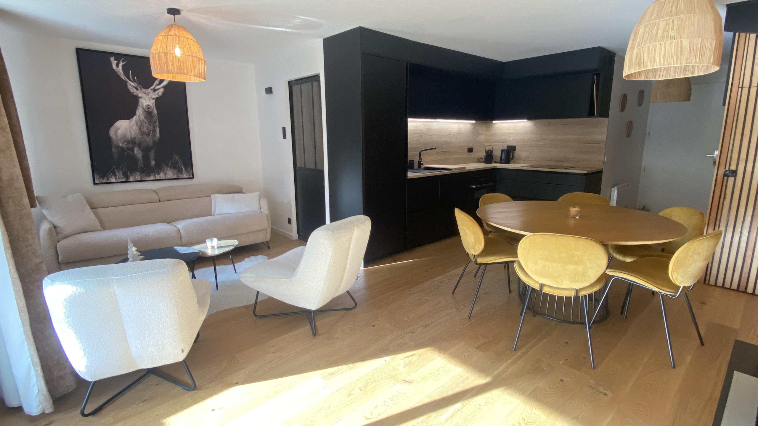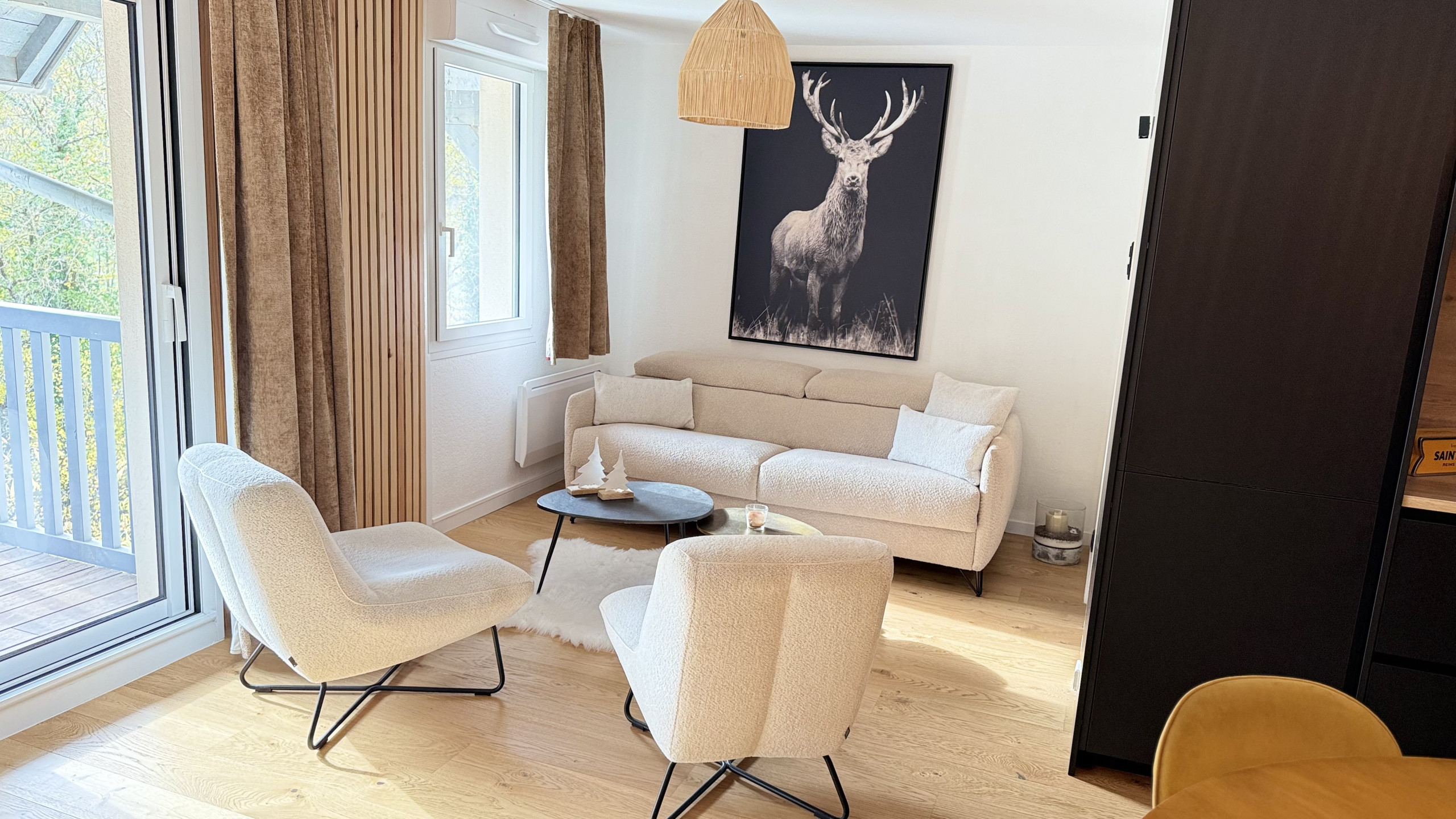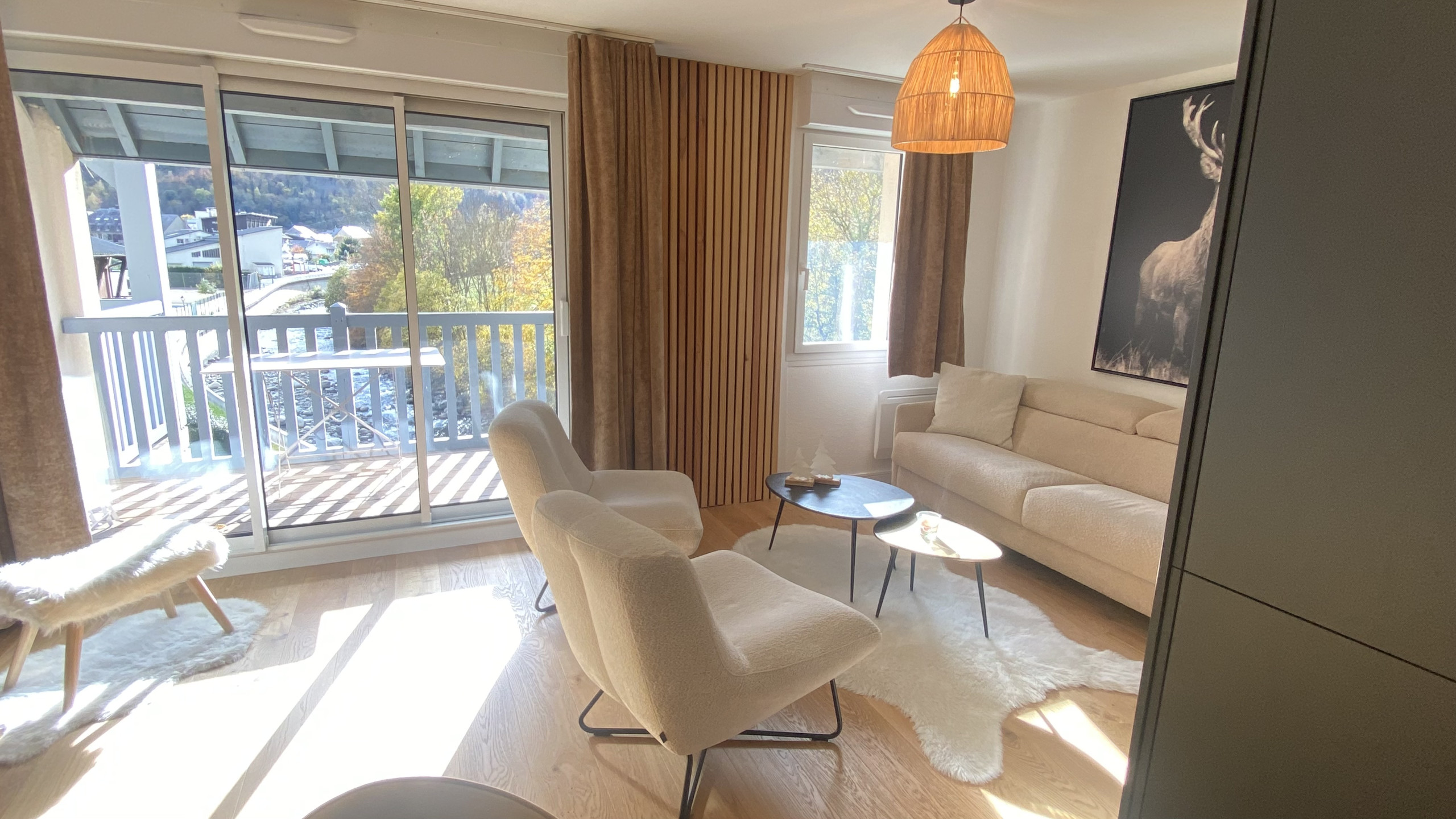 - Large living room opening onto the Balcony. The high-end furniture and decoration have been chosen to enhance the apartment's equipment and make it warm to welcome you throughout the year