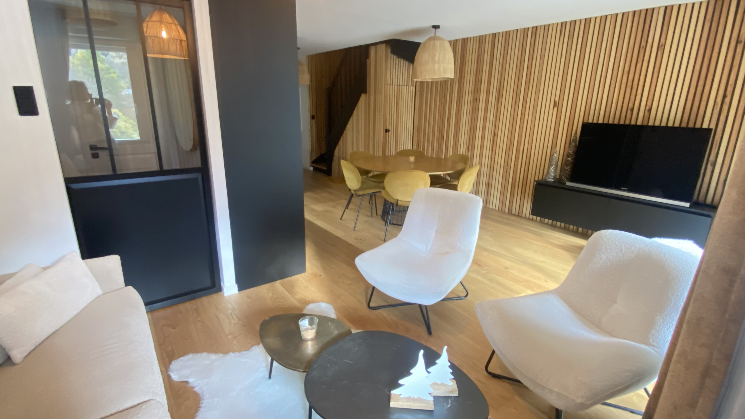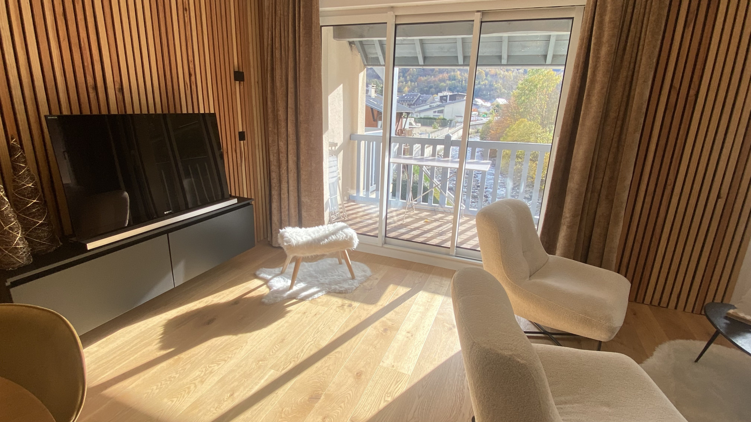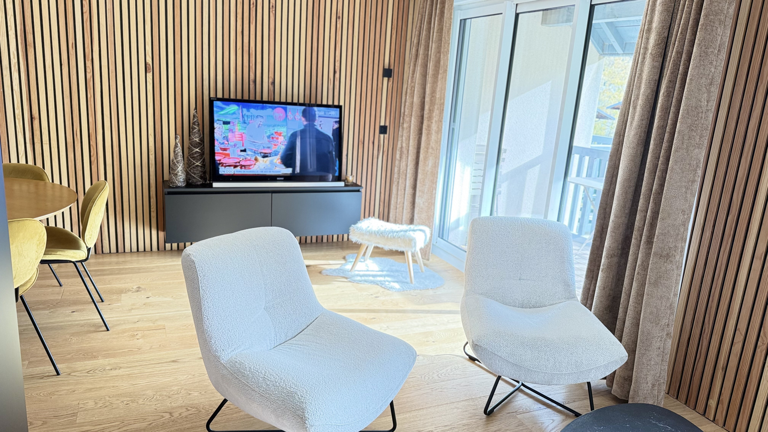 - Large living room opening onto the Balcony. The high-end furniture and decoration have been chosen to enhance the apartment's equipment and make it warm to welcome you throughout the year