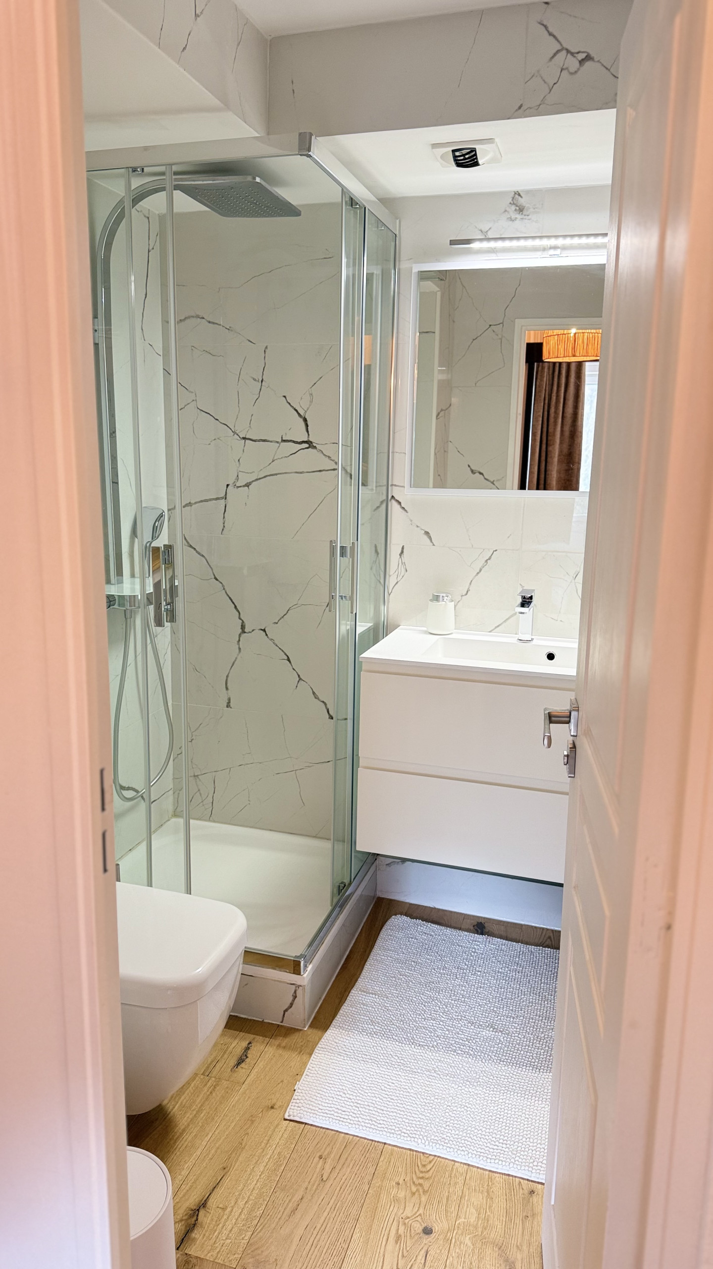 - Bathroom with shower and toilet
