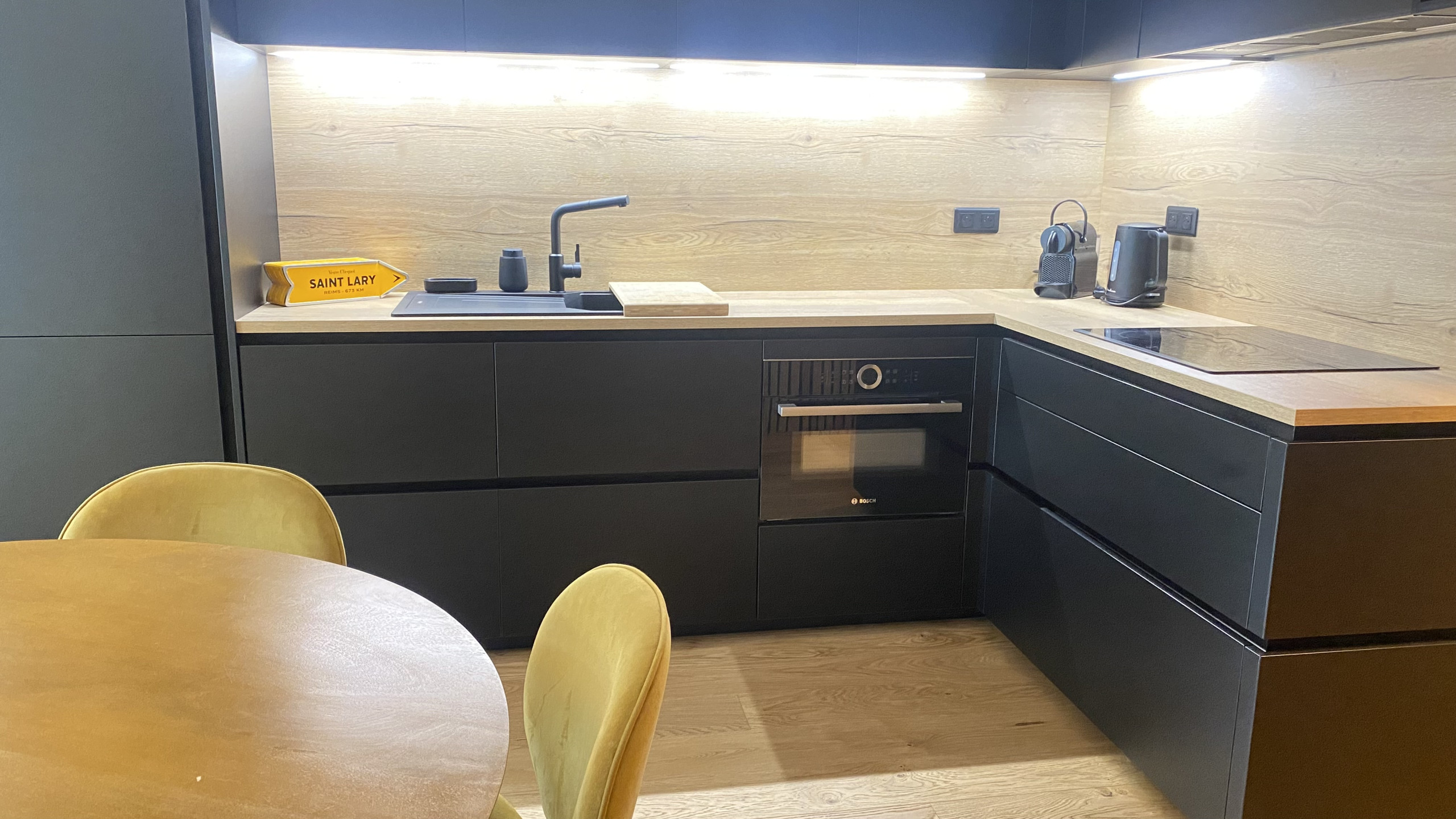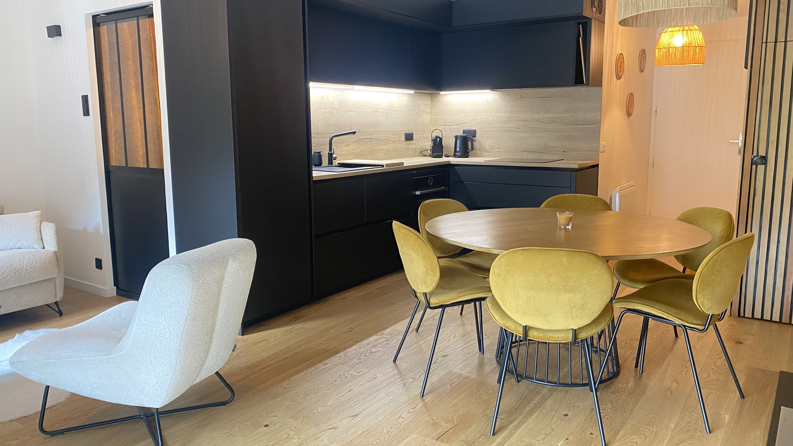 - Fully equipped open kitchen, Nespresso machine, kettle, oven, dishwasher
