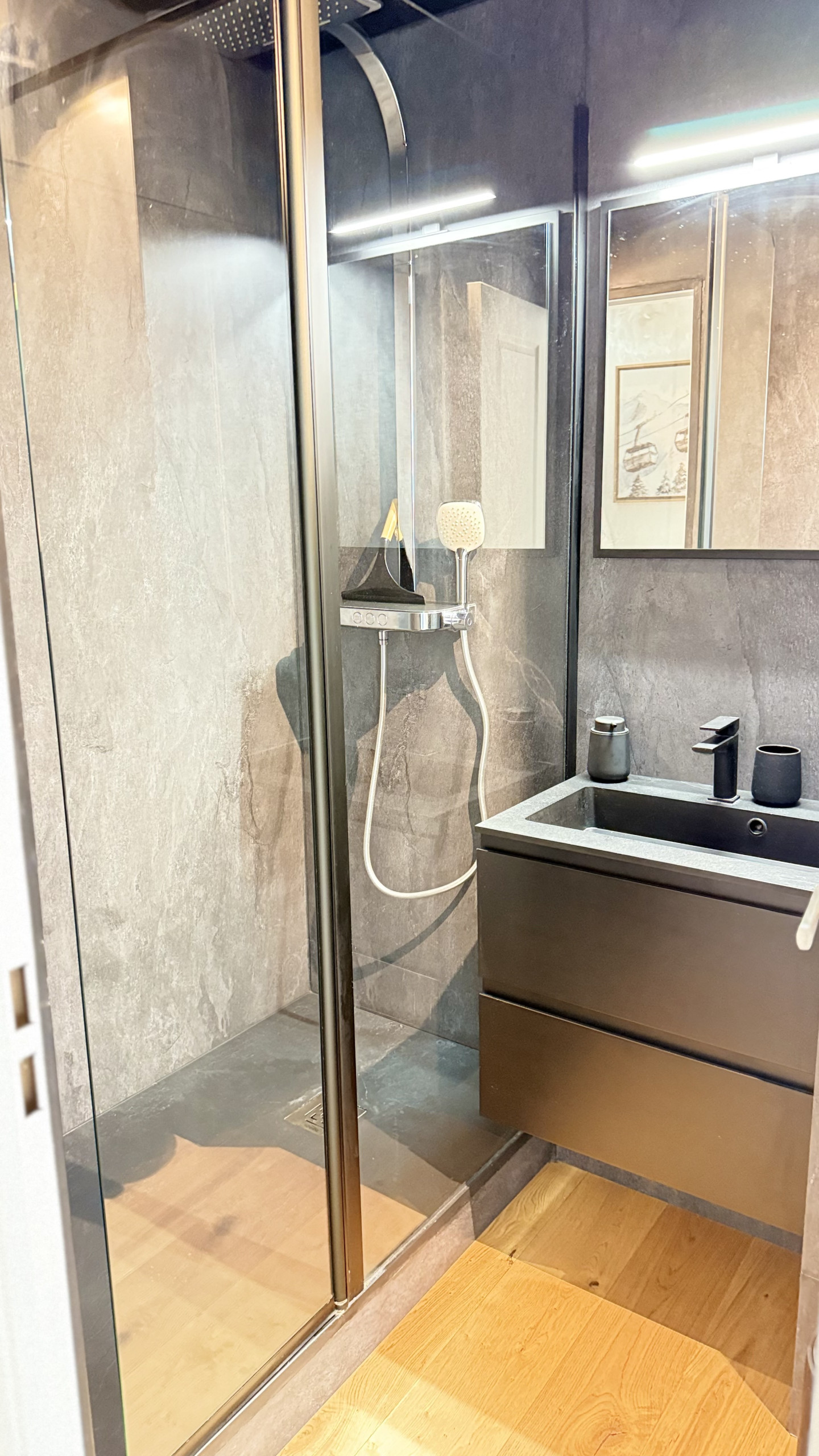 - Bathroom with walk-in shower
