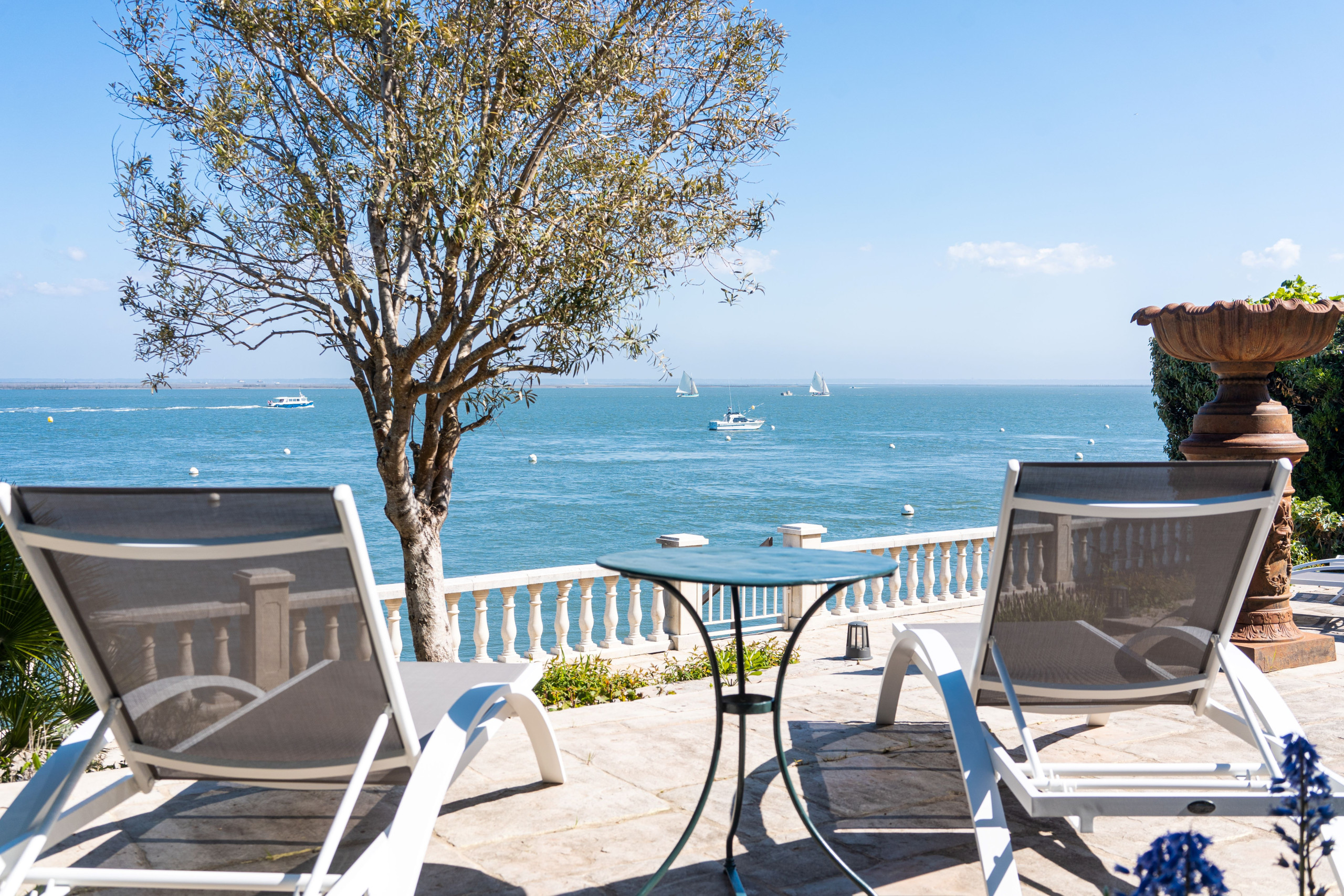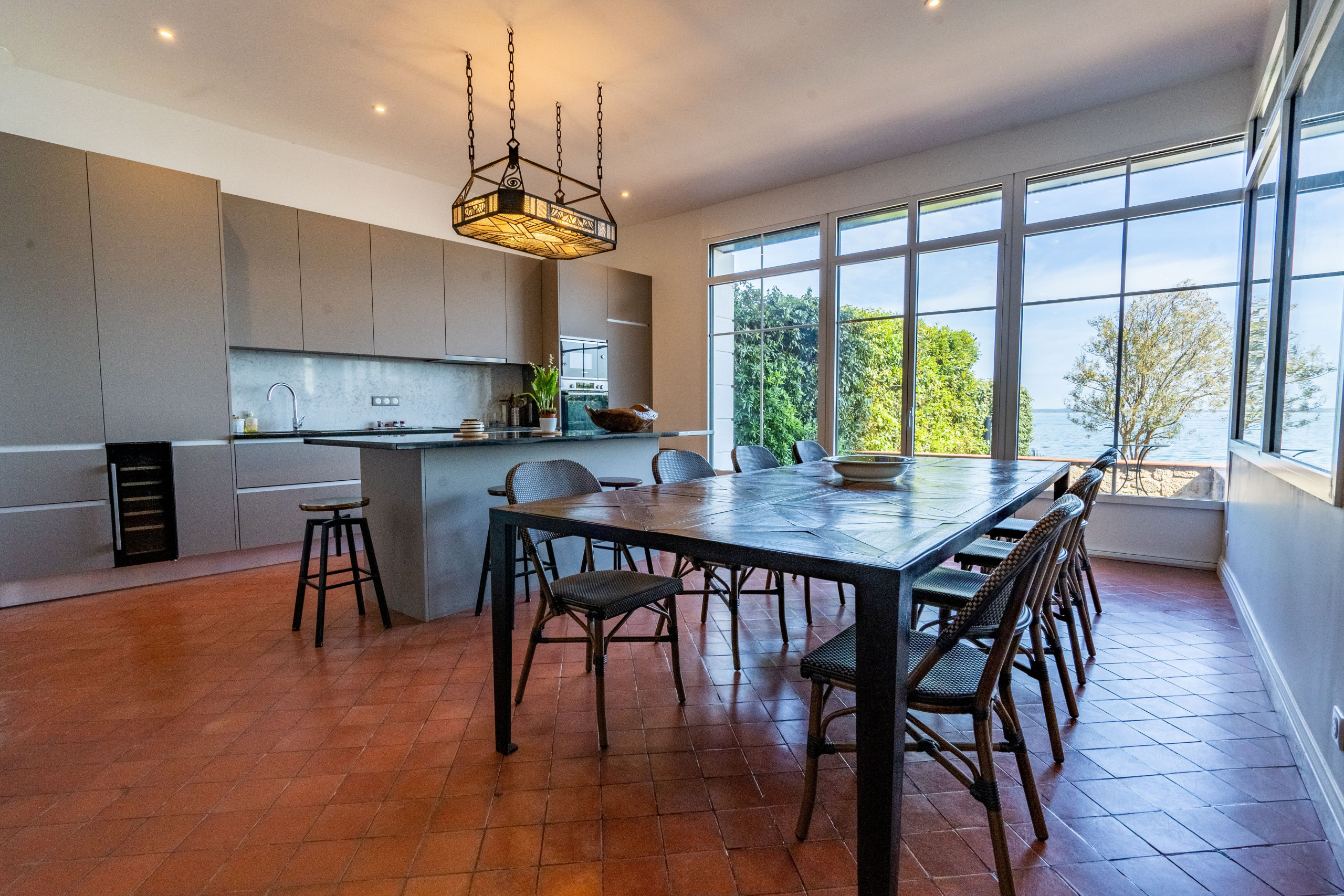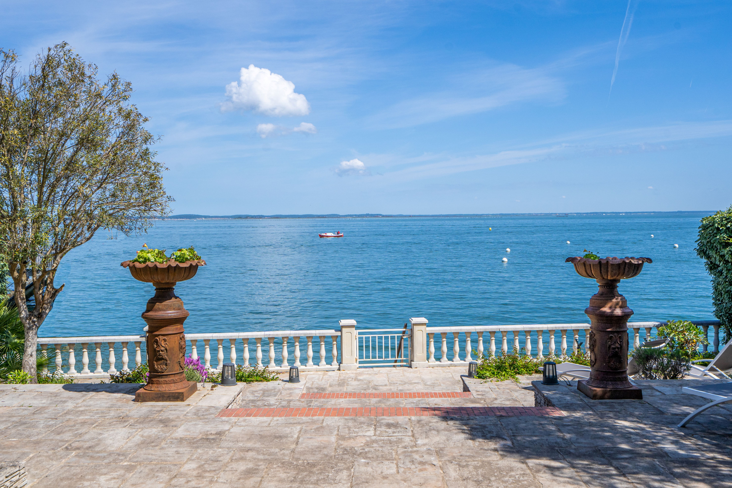 On the Garden Level, 4 suites including one with Basin view, large Living Room overlooking the seafront, fully equipped open kitchen, (back kitchen ideal for a chef's arrival). Winter garden fully openable, terrace on 3 levels with garden furniture and private beach access.